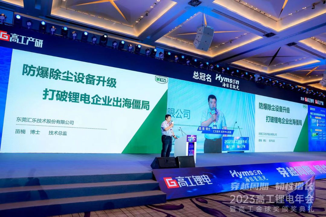 匯樂作為鋰電池工業安全、品質控制和生產環保綜合解決方案提供商,也參加了年會。面對歐盟、美國等國家和地區出臺相關準入政策,中國動力電池產業出海難度不斷加劇的局面,匯樂技術中心總監苗楠博士以“防爆除塵設備升級,打破鋰電企業出海僵局”為主題在年會上宣講匯樂防爆除塵解決方案,助力鋰電企業安全出海!
